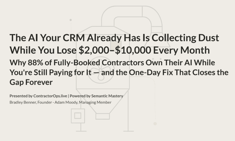 Not ready to reserve a seat yet? Get the free Syracuse Contractor AI Report — what's actually working for local contractors, delivered to your inbox.